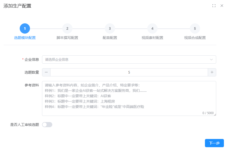 企业只需要填写好自己的产品、服务、业务等信息,AI会自动分析出目标客户最常搜索的关键词,帮企业进行科学选题。你不用再猜客户在想什么,AI直接告诉你。